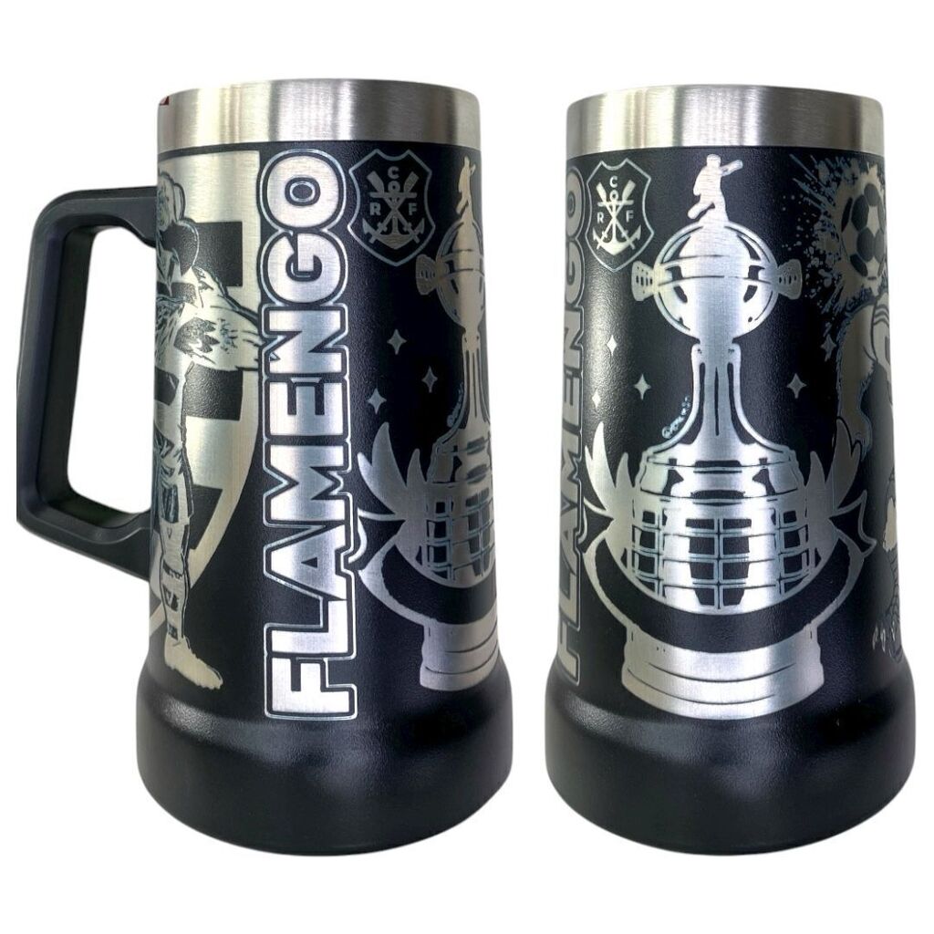 Mostre com estilo o orgulho de ser Rubro-Negro com esta caneca inspirada no Flamengo! Ela traz um design marcante com gravação a laser da Taça Libertadores, o escudo e elementos que celebram as grandes consquistas do Mengão.