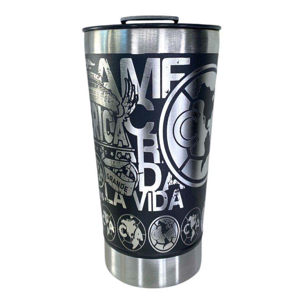 Design com detalhes que destacam o escudo do Club América, emblema do Estadio Azteca e o símbolo da águia, o copo traz o espírito de vitória e a tradição que define o time. O brilho metálico em contraste com o preto garante um visual elegante e impactante.