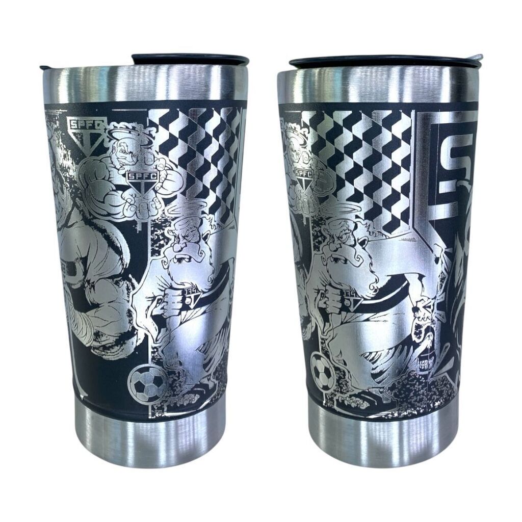 Esse copo do São Paulo FC traz um design marcante em alto relevo com ilustrações poderosas que representam a garra do time.