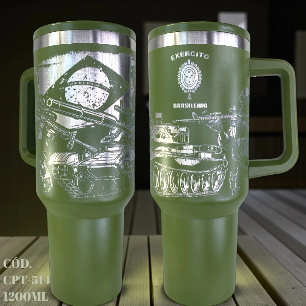 Para quem honra a pátria, admira o estilo militar ou simplesmente gosta de acessórios robustos, esse copo é perfeito! Produzida em material resistente, na cor verde militar e estampa detalhadas de tanque de guerra e símbolos do Exército Brasileiro.