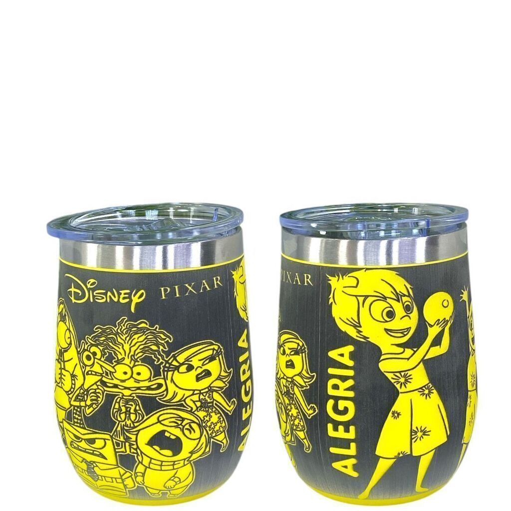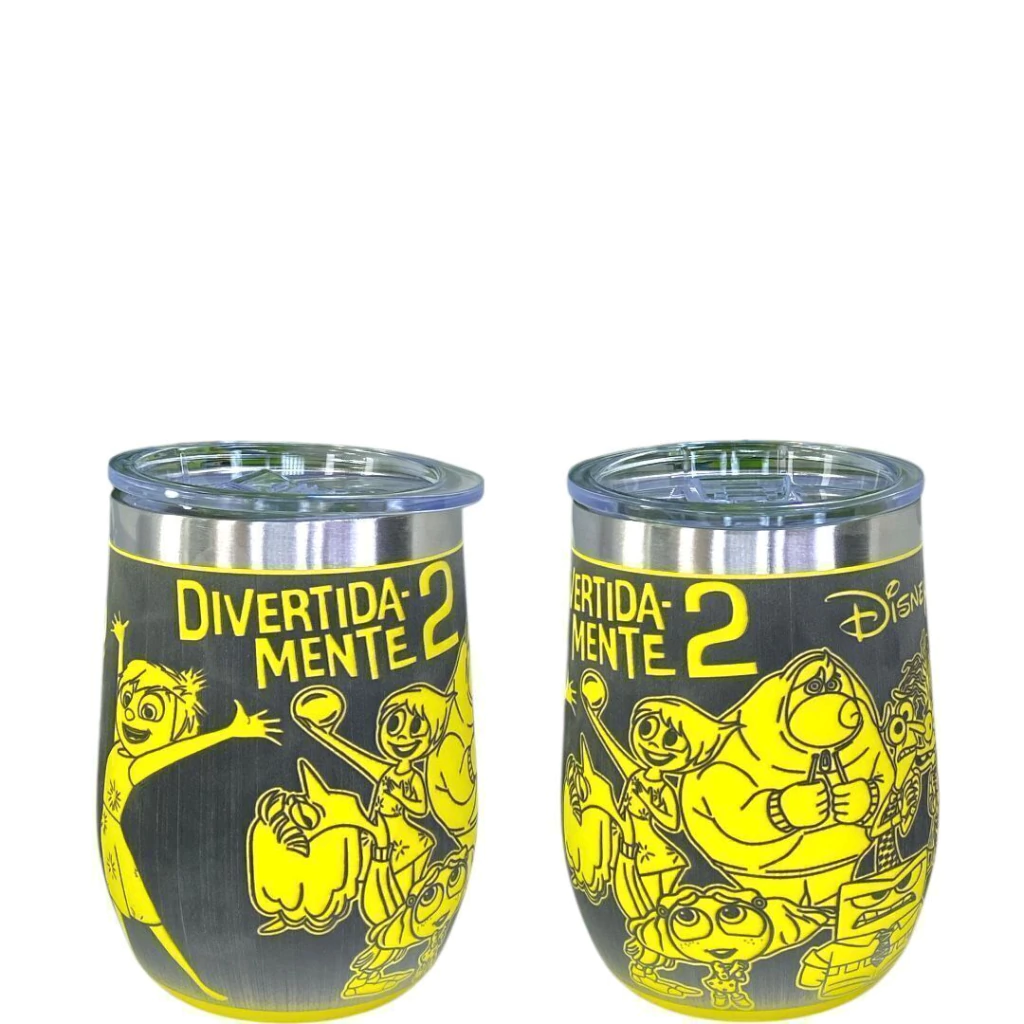 Produzido em aço inoxidável de qualidade, este copo garante resistência, durabilidade e um visual moderno. O design é exclusivo e cheio de personalidade, trazendo os personagens marcantes da animação Divertida mente 2, como alegria e suas emoções companheiras, em um acabamento vibrante e colecionável.