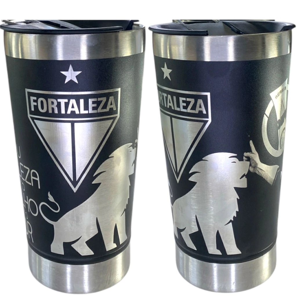 Para quem carrega o Fortaleza no peito e na rotina! O copo chega com arte trazendo escudo, o leão e frases que representam toda a paixão Tricolor. Essa peça parece saída direto do Castelão -- vibrante,marcante e feita pra torcida que não abandona.