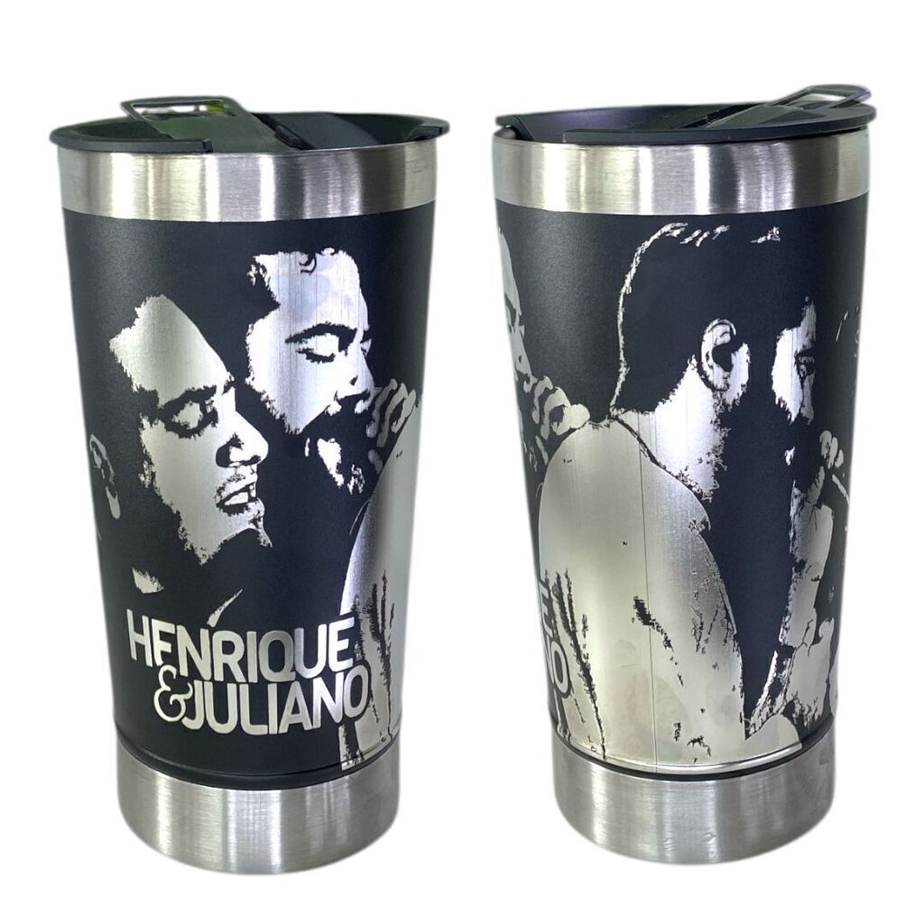 O Copo Térmico Henrique & Juliano é a escolha ideal para quem é fã e quer carregar um pedacinho da música em cada gole. O design traz imagens marcantes em frases icônicas, destacando a essência e emoção da dupla.