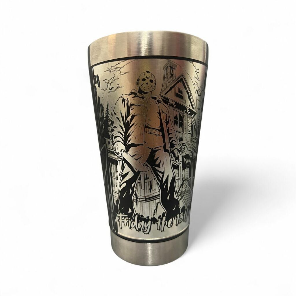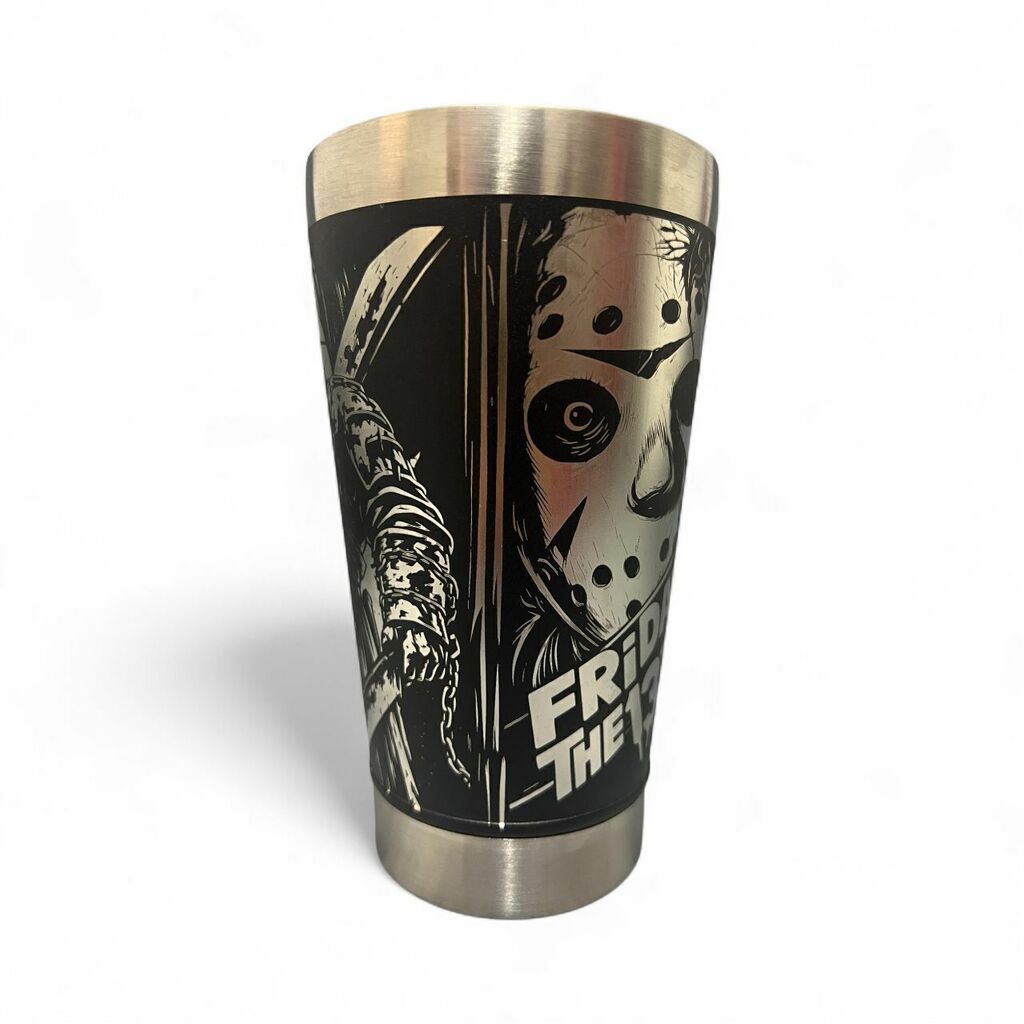 Assuma o clima de suspense e estilo com este copo térmico do filme Sexta-Feira 13. Inspirado no icônico personagem Jason Voorrhees, ele é perfeito para fãs de filmes de terror que querem unir colecionismo,praticidade e personalidade no dia a dia.