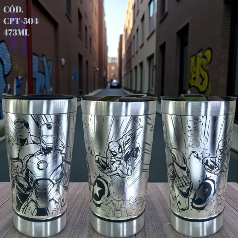 Leve a força dos Super-Heróis para o seu dia a dia com esse copo com a arte inspirada nos heróis mais queridos dos quadrinhos, ele é perfeito para quem ama HQ, filmes e colecionáveis.