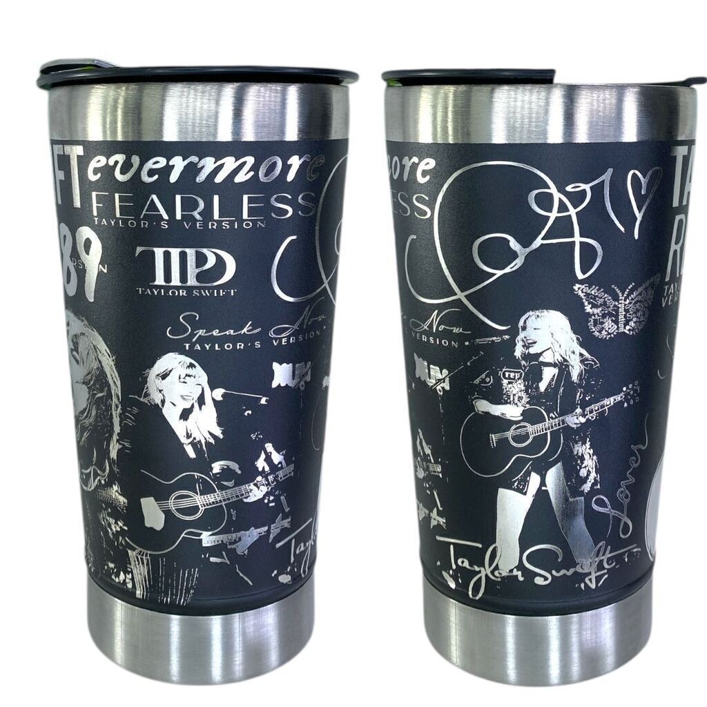 Prepare-se para elevar sua paixão por Taylor Swift a outro nível com um dos nossos itens inspirado na Taylor Swift. Esse modelo traz ícones marcantes dos álbuns Red,Folklore e muito mais! Disponível em dois modelos de copo. É o item indispensável para qualquer Swiftie que deseja unir funcionalidade e paixão em um único produto.