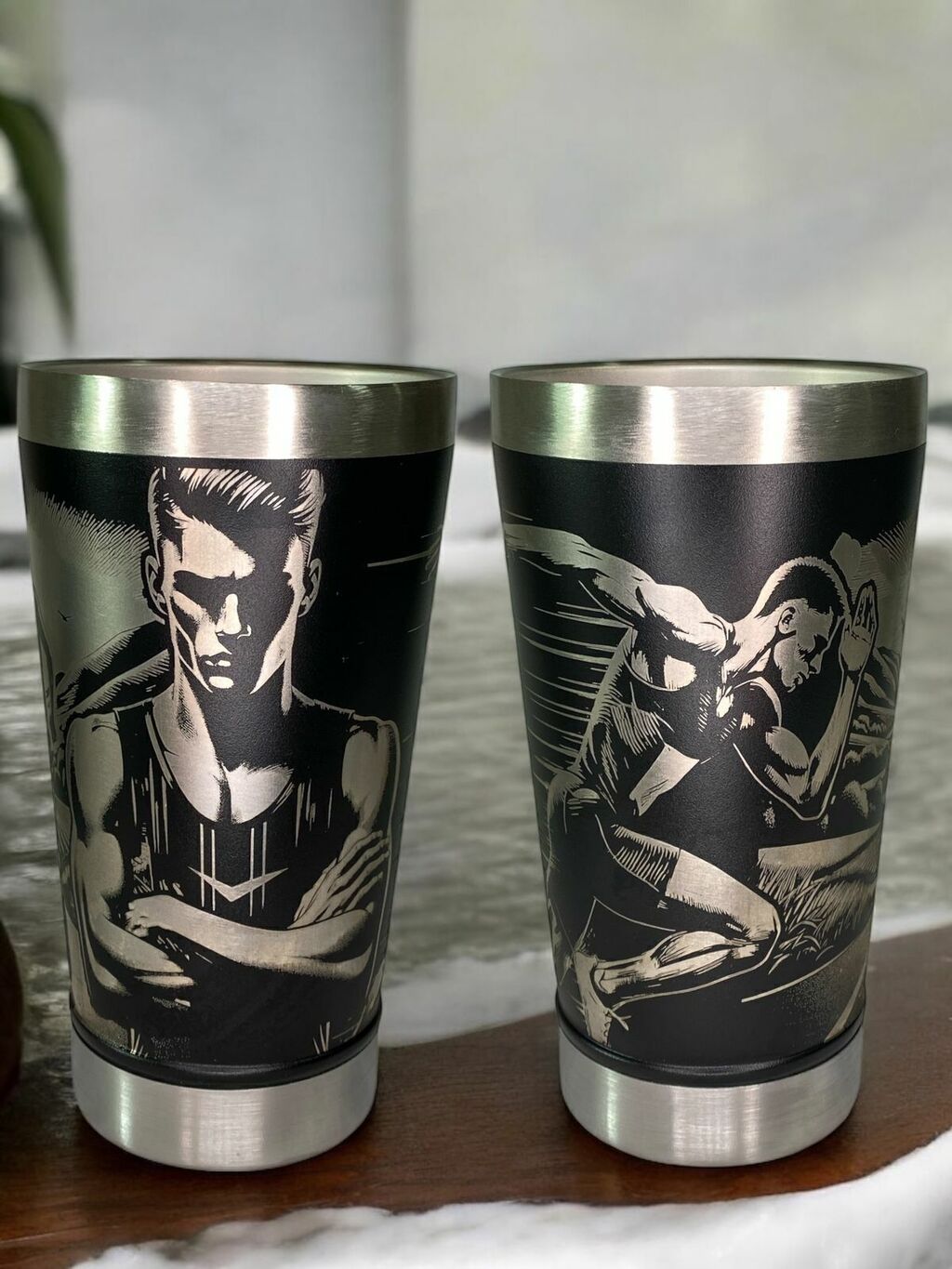 Leve motivação e estilo para o seu dia com esses copos térmicos personalizados com ilustrações de atletas em alto-relevo. Feitos em aço inox com acabamento preto e gravação a laser, são perfeitos para quem busca personalidade, resistência e funcionalidade. Ideal para bebidas quentes ou geladas, com excelente conservação térmica.