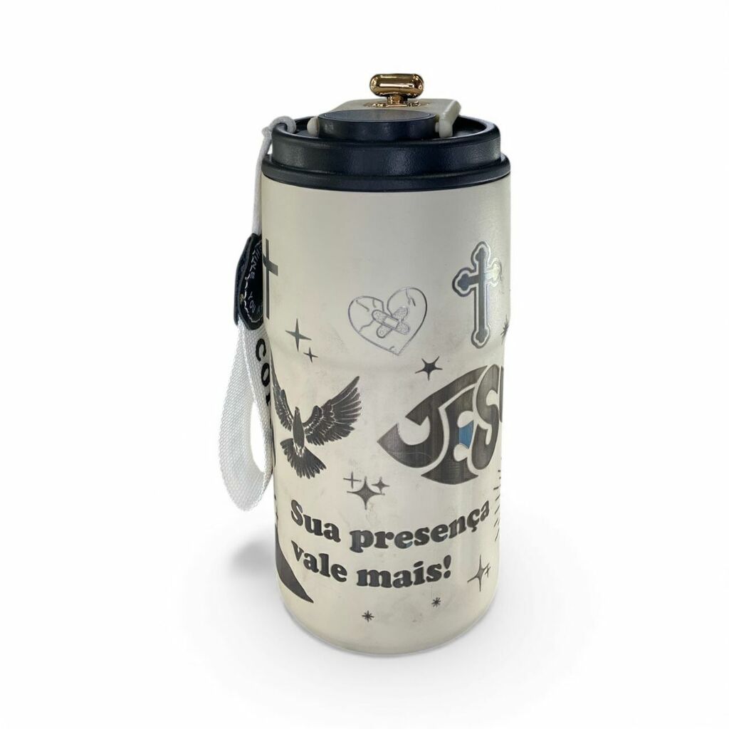 Um produto que une fé, praticidade e estilo, conservando sua bebida na temperatura ideal e transmitindo inspiração a cada gole.