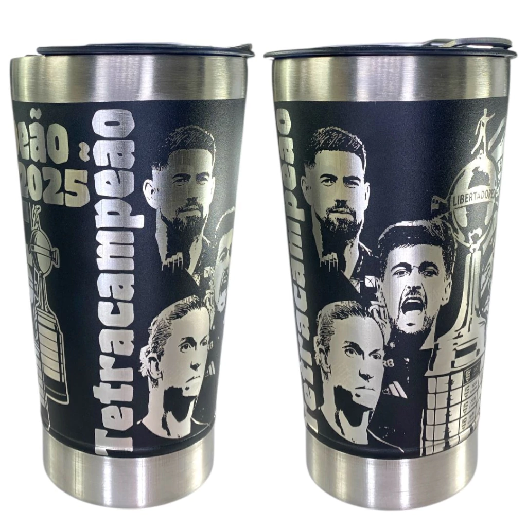 Copos Campeão 2025 Térmico 473ml Palmeiras & Flamengo com Tampa e Abridor
