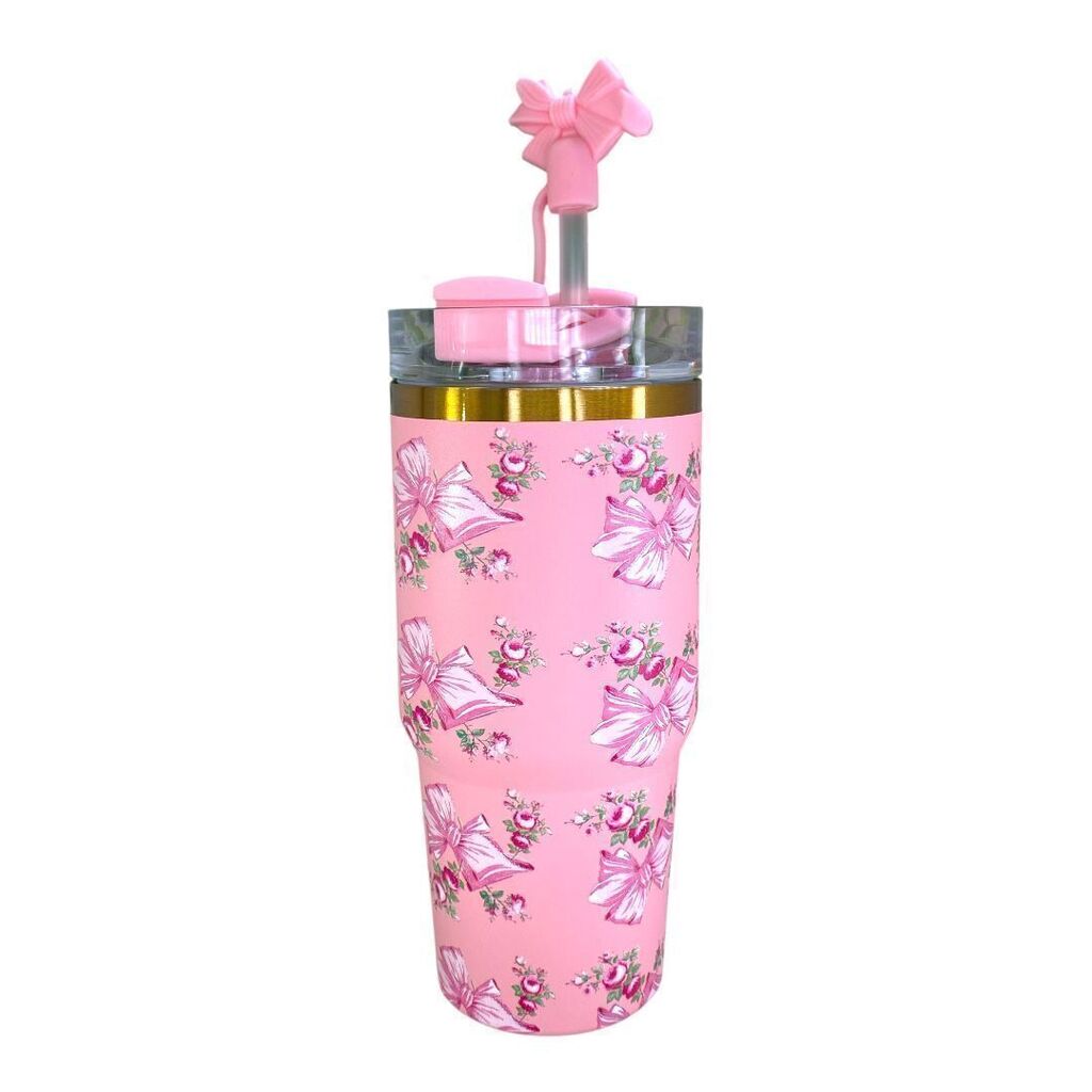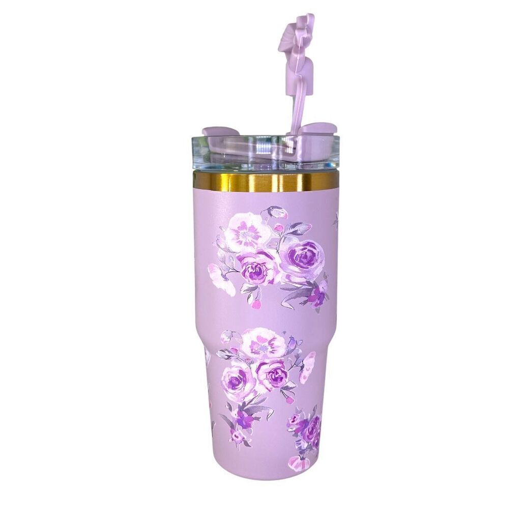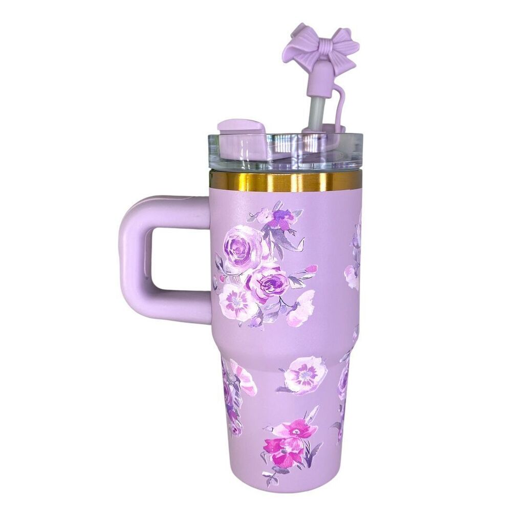 Mini Copo Térmico Floral 420ml com Alça e Canudo + Protetor de Canudo Delicadeza e estilo em cada gole!